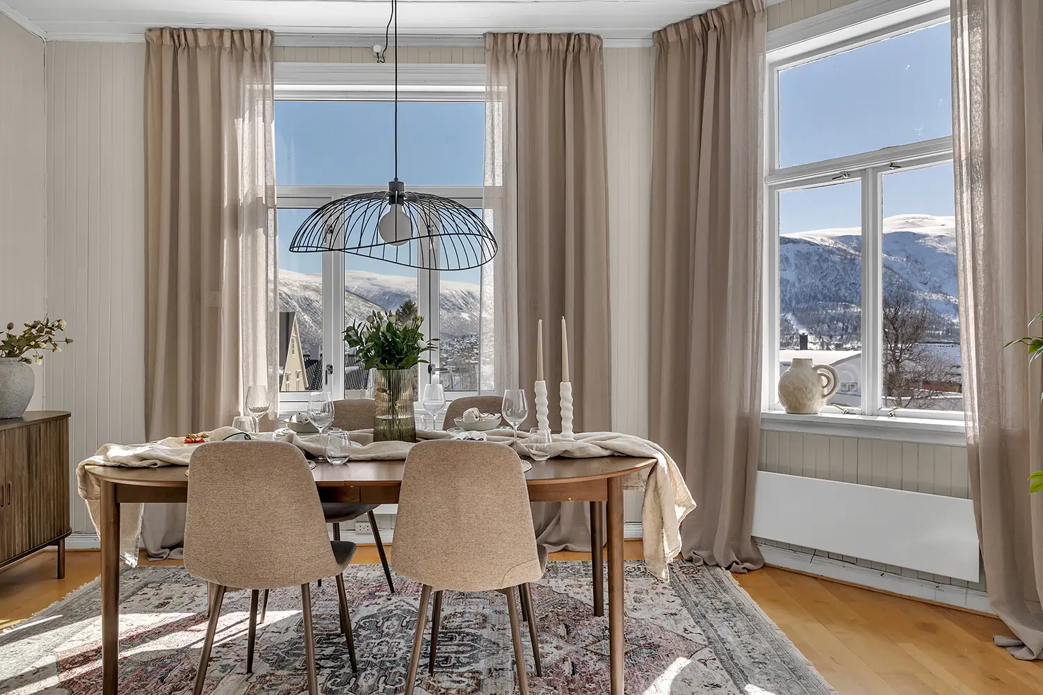 A perfect property to see the northern lights, just outside your own window! The apartment offers a breathtaking view over Tromsø City and its landmarks.The property has a unique closeness to the city and to all activities, but at the same time it is in a very calm and quiet street.